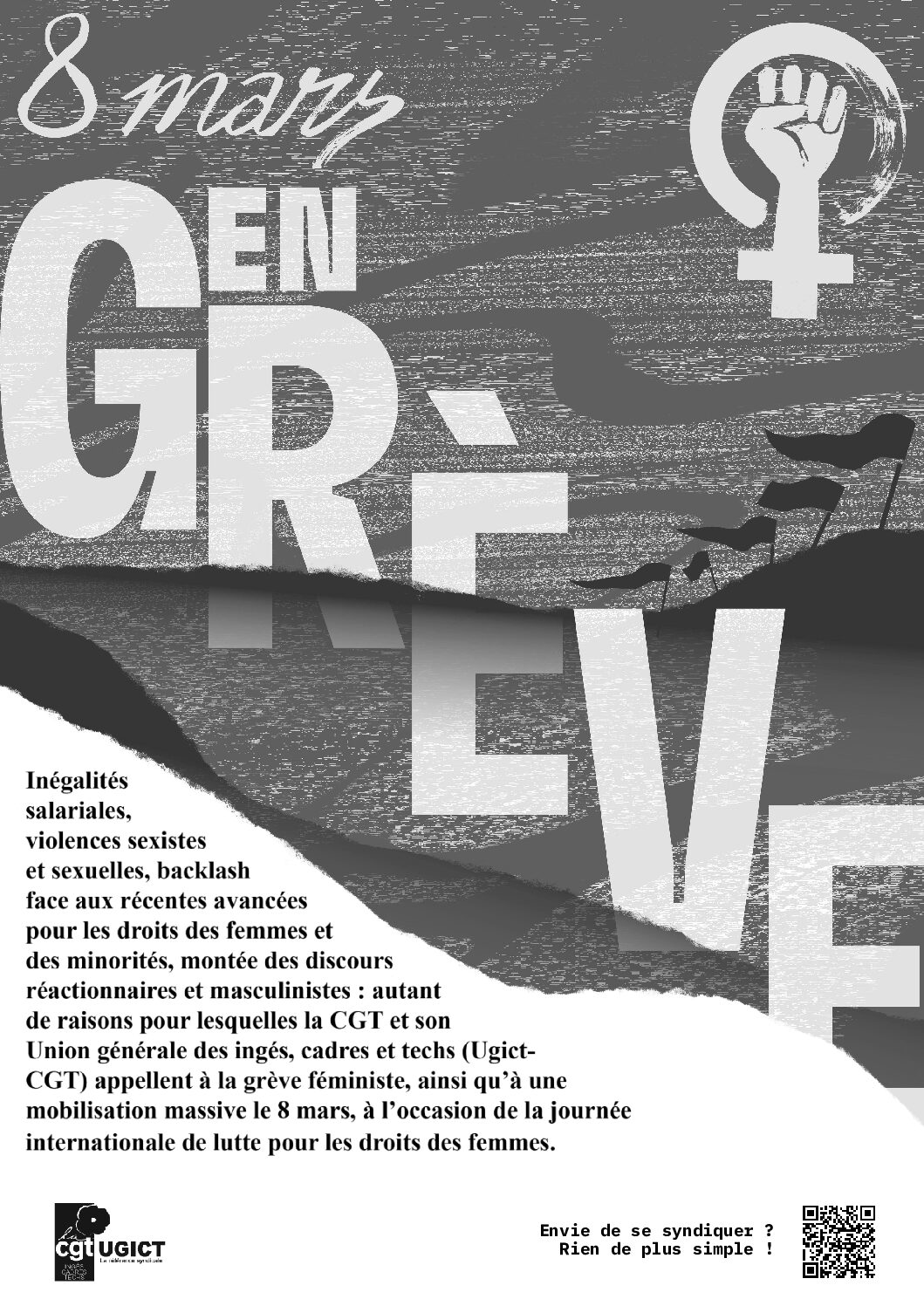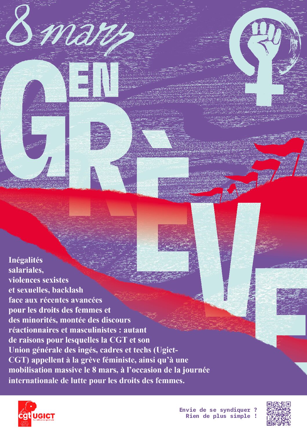 La CGT et son Union générale des ingés, cadres et techs (Ugict-CGT), appellent à la grève féministe, ainsi qu’à une mobilisation massive le 8 mars, à l’occasion de la journée internationale de lutte pour les droits des femmes.