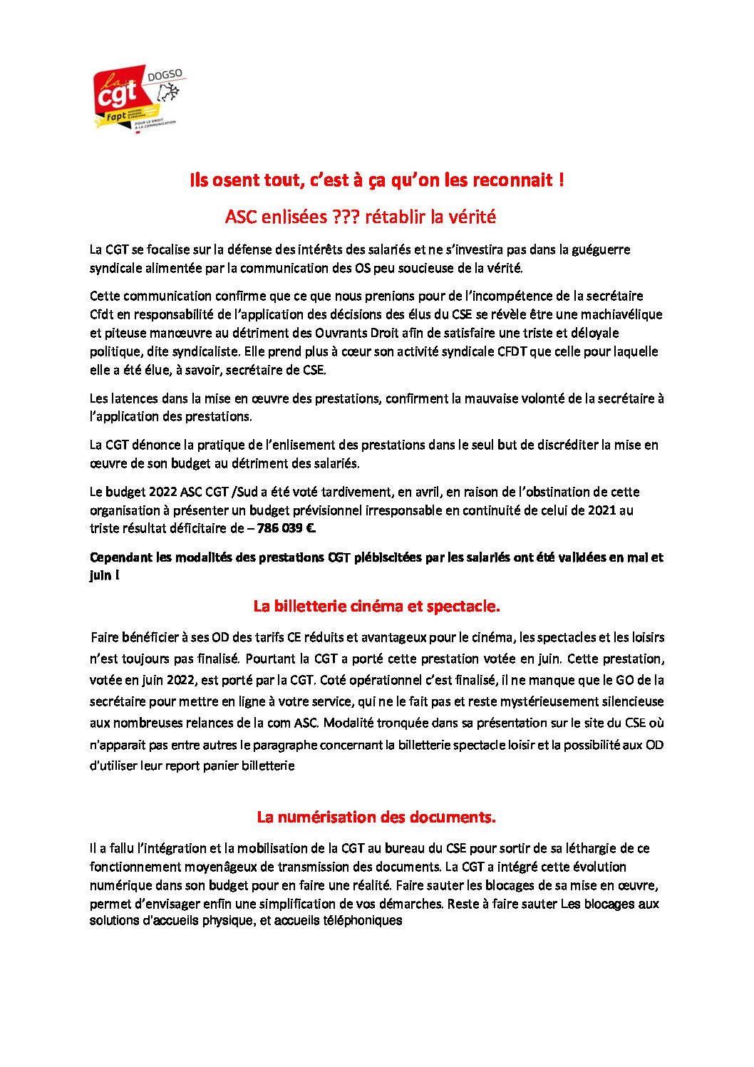 Information mensuelle CGT vers les salariés du périmètre de la Gironde