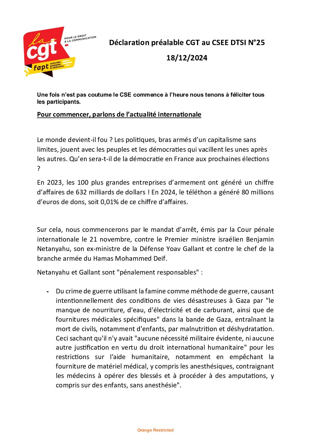Déclaration préalable CGT CSE DTSI JANVIER 2025
