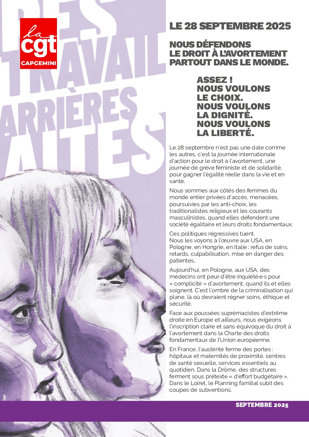 28 septembre 2025- Journée internationale pour le droit à l'avortement - Collectif Egalité CGT Capgemini