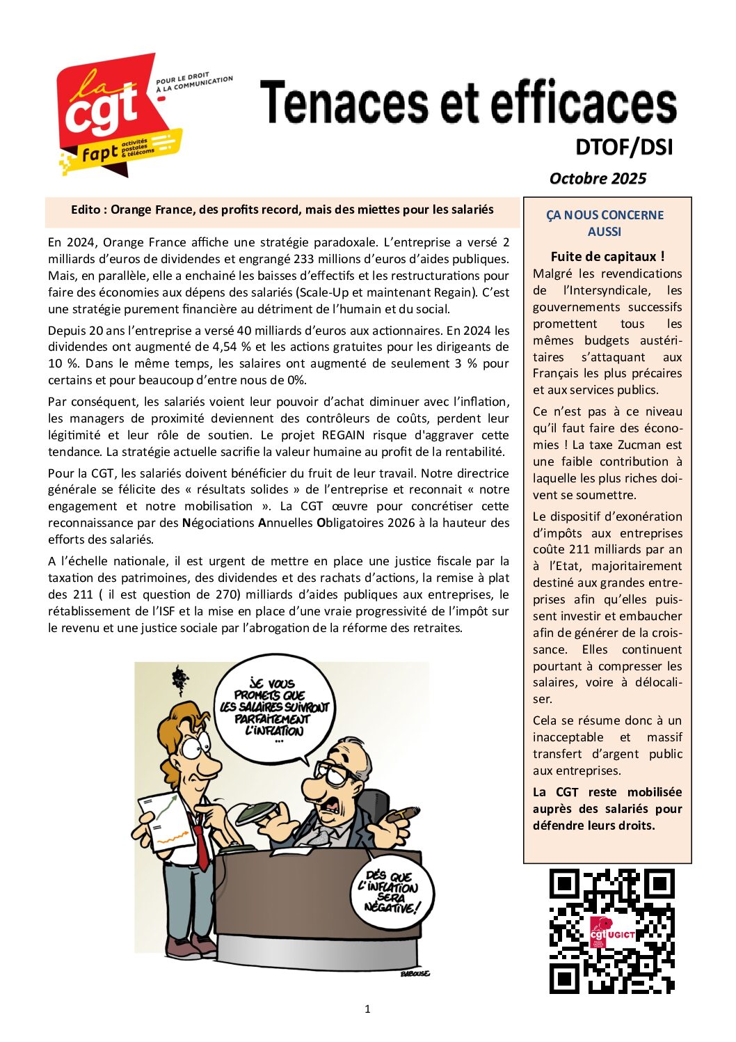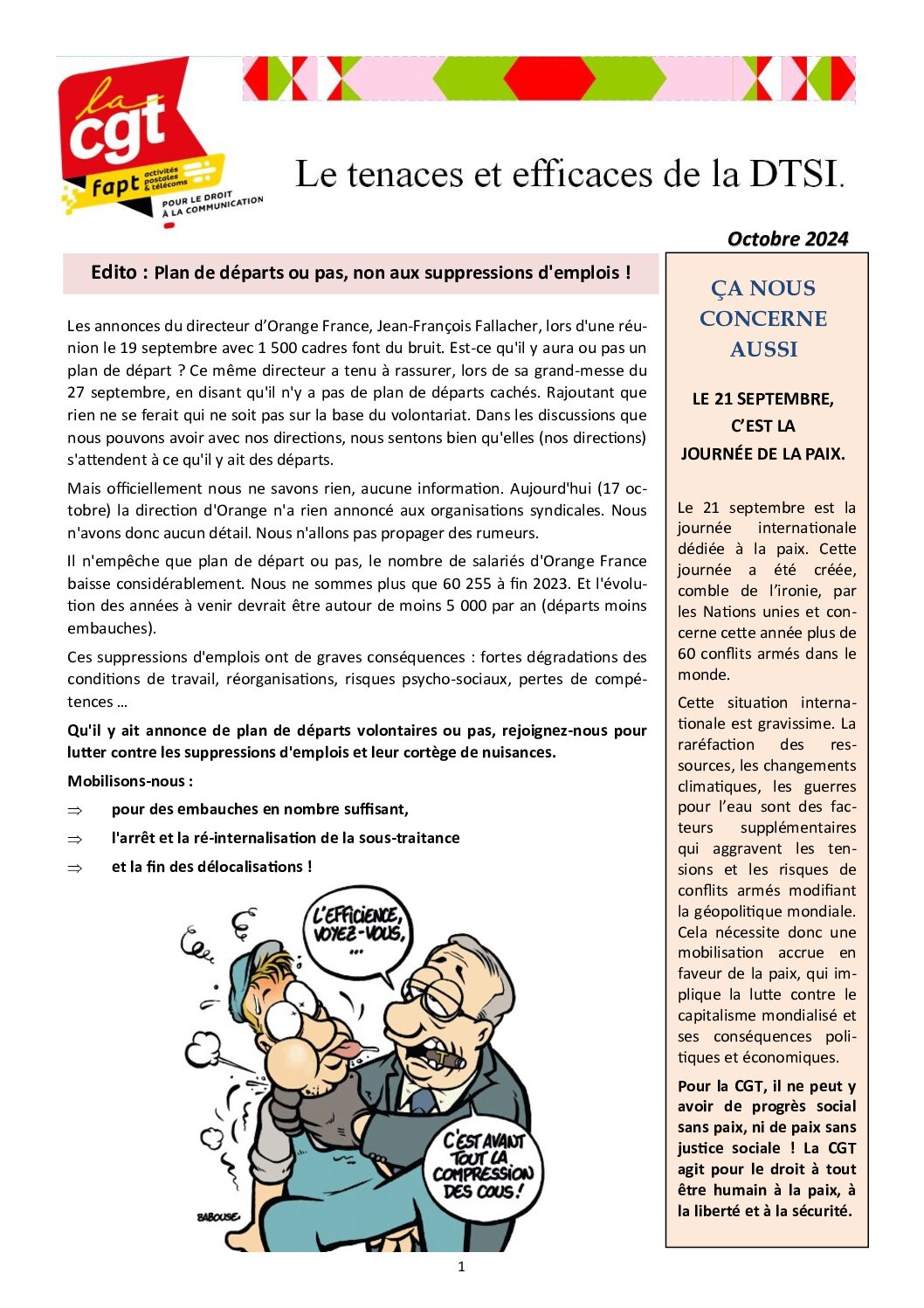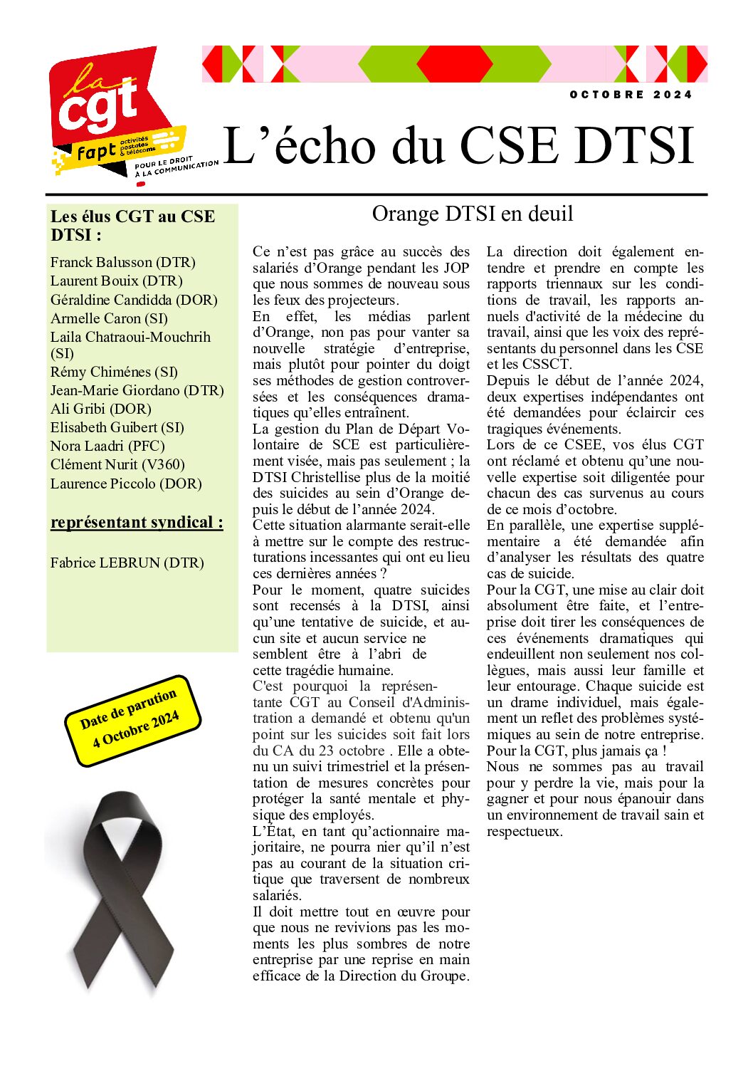 Bulletin des élus CGT au CSEE de DTSI Orange SA d'Octobre 2021