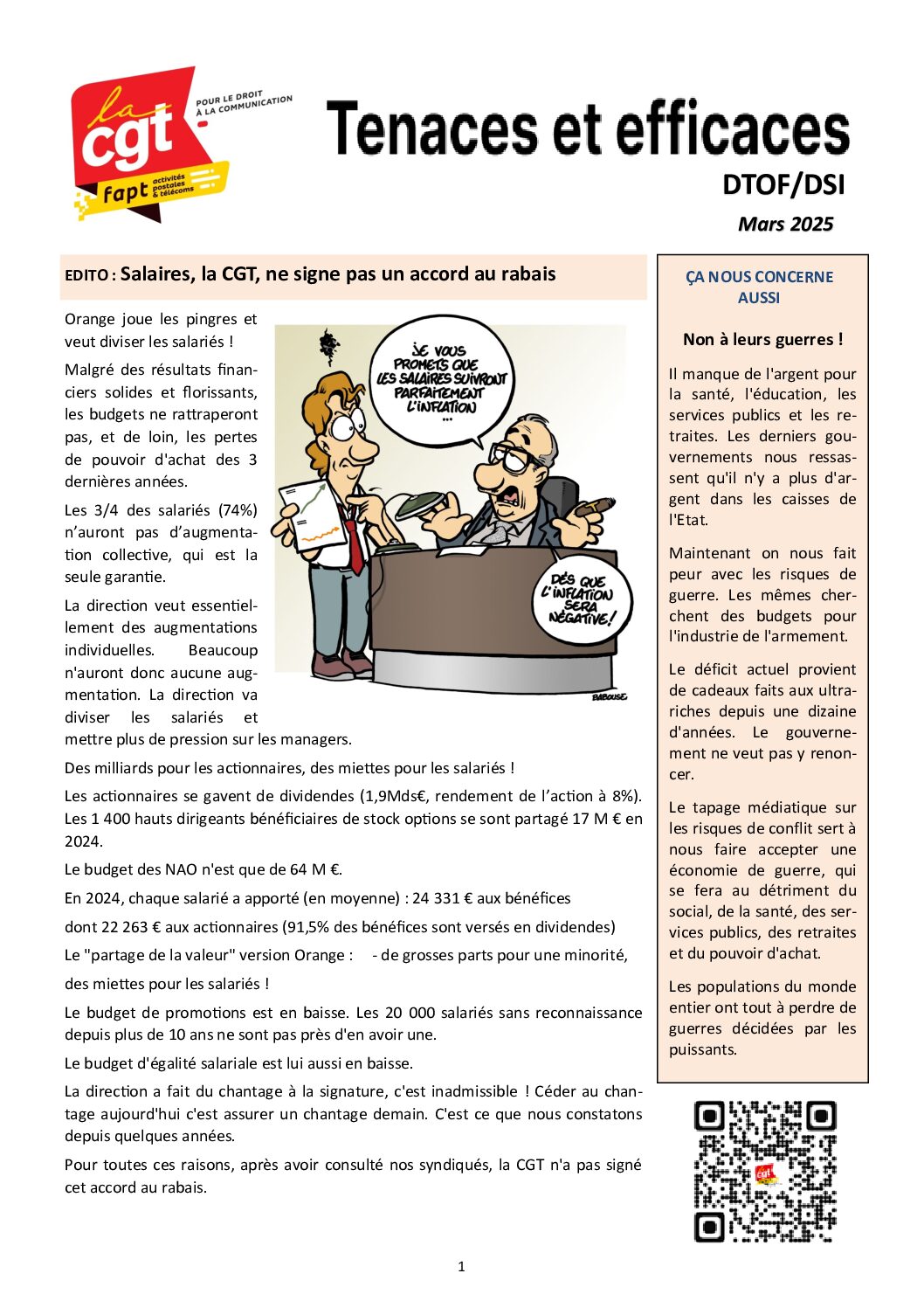 Bulletin des élus CGT au CSEE de DTSI Orange SA de Mars 2021