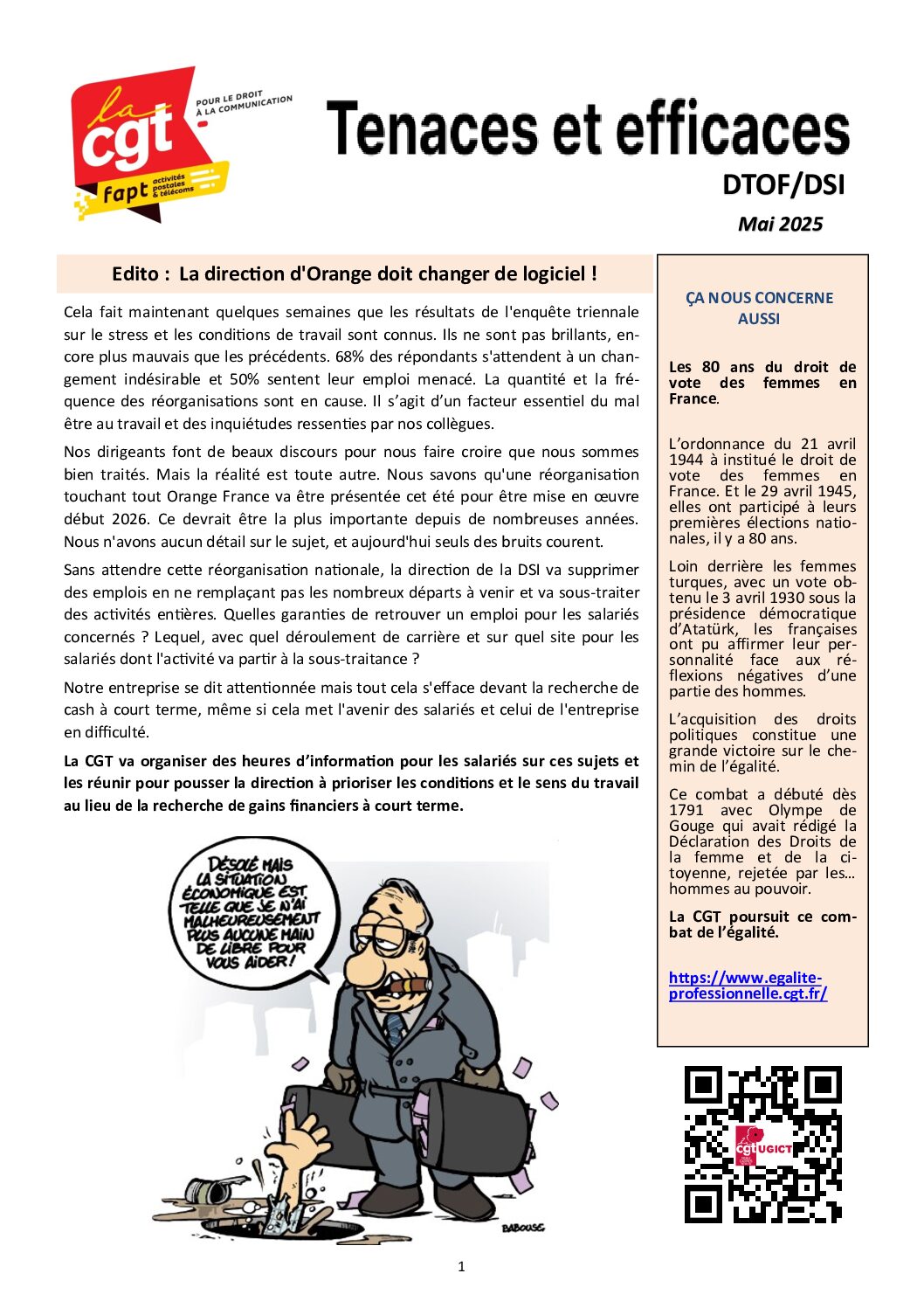 Bulletin des élus CGT au CSEE de DTSI Orange SA de Mai 2021