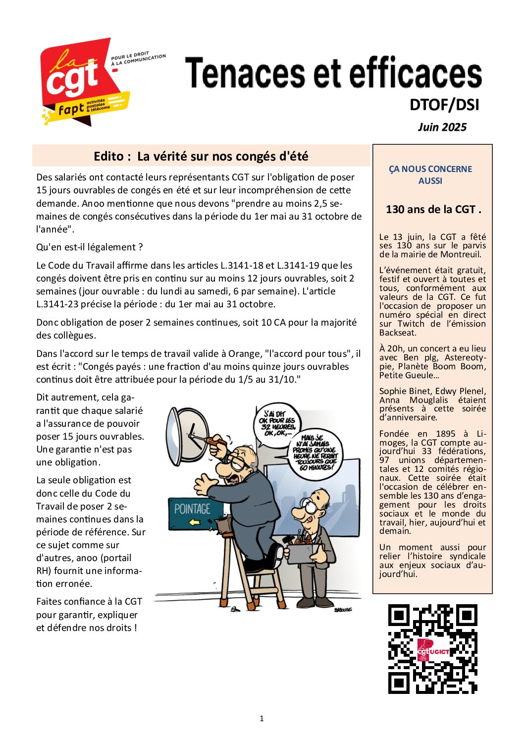 Bulletin des élus CGT au CSEE de DTSI Orange SA de Juin 2021