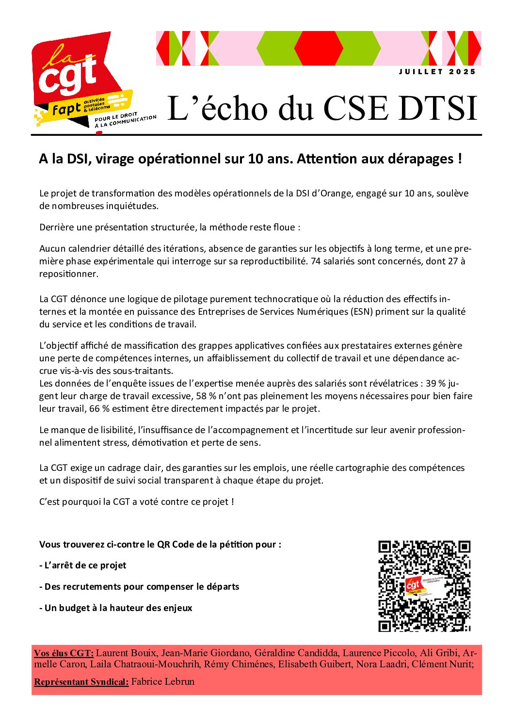 Bulletin des élus CGT au CSEE de DTSI Orange SA de Juillet 2021