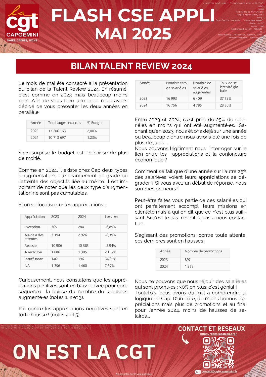 CGT Capgemini CSE égalité mobilisation Rémunération Salaires Stratégie des entreprises Tract