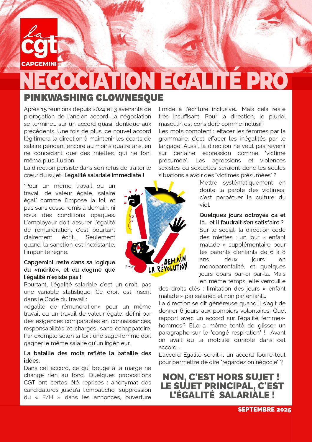 Egalité salariale non atteinte - Fin de la négociation du nouvel Accord Egalité Pro - Capgemini - sept2025