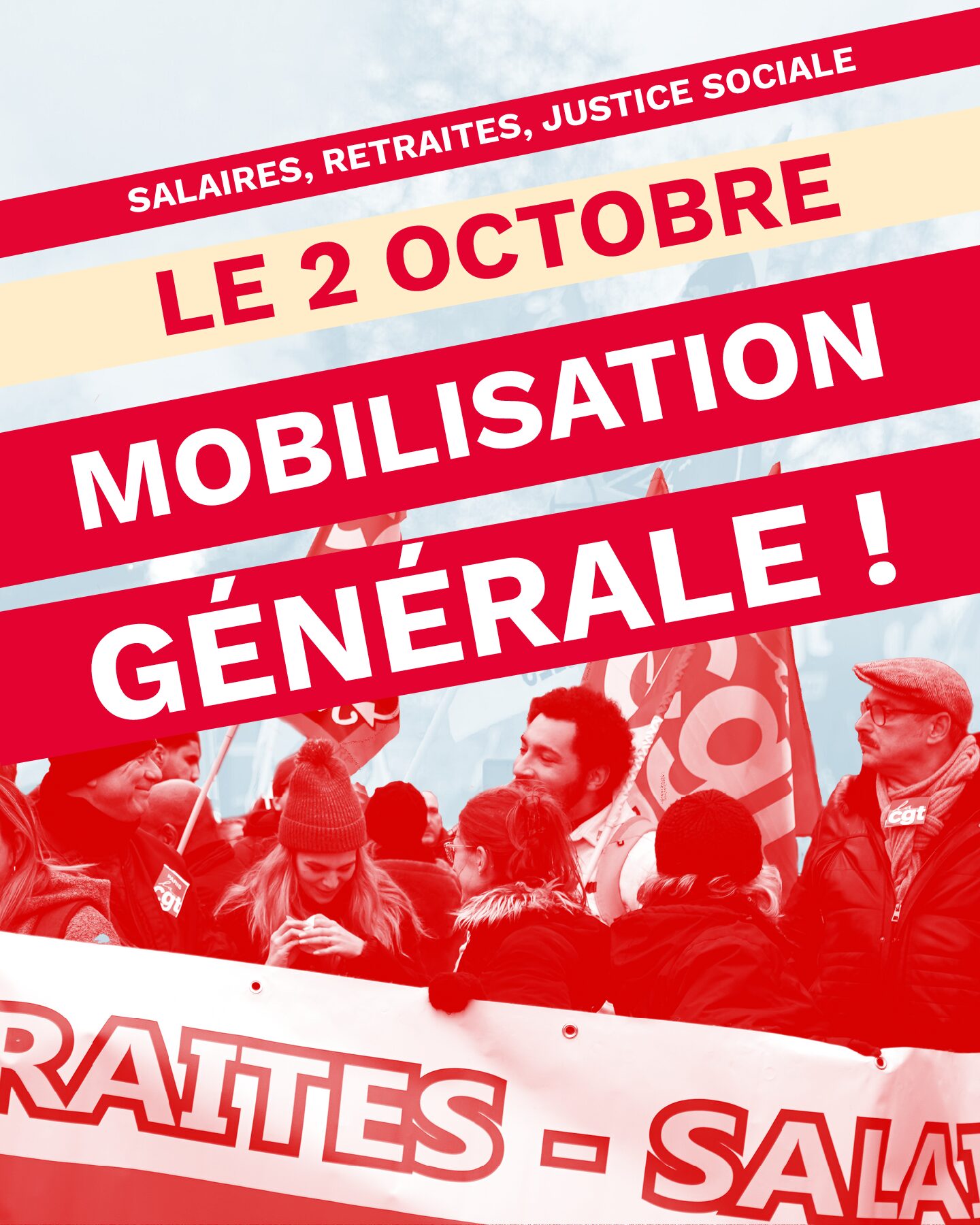 Le 2 octobre, tou·tes en grève ! En continuant à mobiliser collègues, ami·es et famille, nous pouvons gagner un budget décent, l'abrogation de la réforme des retraites, et de meilleurs salaires.