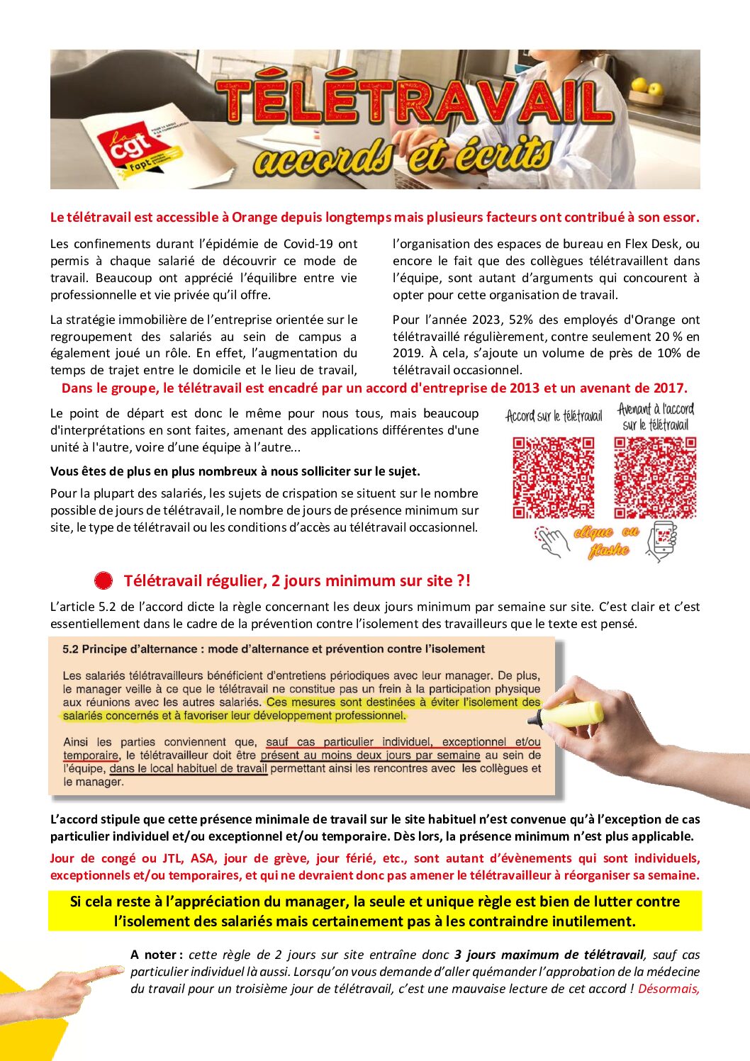 Tract sur les accords et règles télétravail à Orange | Ajouter à ma liste |