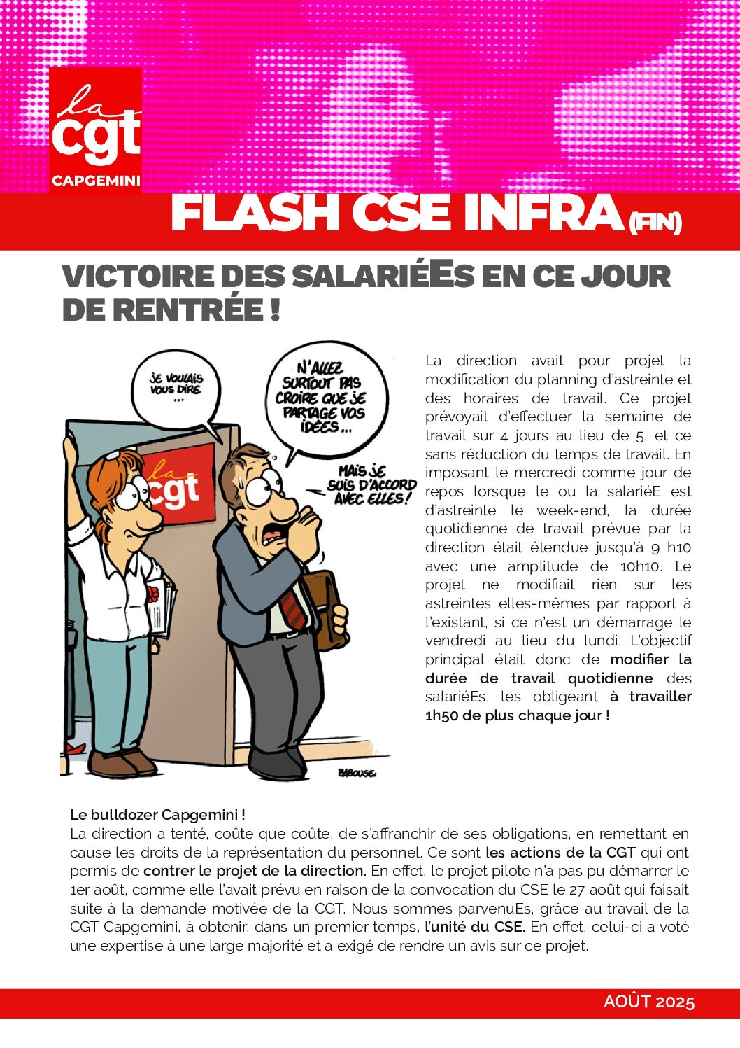 Victoire des salariéEs en ce jour de rentrée ! Suite et fin - CSE INFRA- CIS Capgemini août 2025